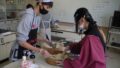 スクーリング(家庭総合)、地元の名物料理を中心に調理実習を行なっています。「てこね寿司」「青さの味噌汁」
